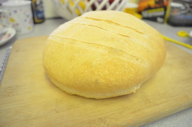 I had to laugh at the slashing instructions, I read them to hubby who draws bridges–he had a hard time visualizing the slashes! But however slashed it turned out great. A chewy crust and a fine crumb. Just perfect!