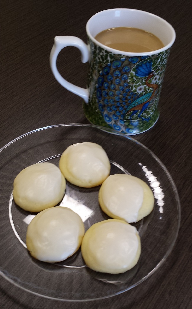 Preparing the frosting was another tricky procedure; pouring 242 degree syrup into the mixer while it is running at medium speed beating the egg whites, but I actually did it without mishap. My frosting turned into the beautiful shiny marshmallow look that was in the photo in the book.